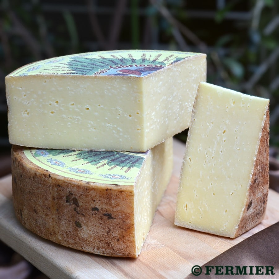 ミルクを固めて型に入れたあと、圧搾して水分を抜き、硬くしたタイプです。チーズの中でも大型で、ものによっては何十キロにもなります。熟成期間も数カ月から、長いものでは2年、3年と長期に。熟成させるほどに旨味が増し、断面にツブツブの白い旨味の結晶が見えることもあります。スライスしてそのままサンドウィッチにはさんだり、削ったり、溶かしたりして料理にも使用します。